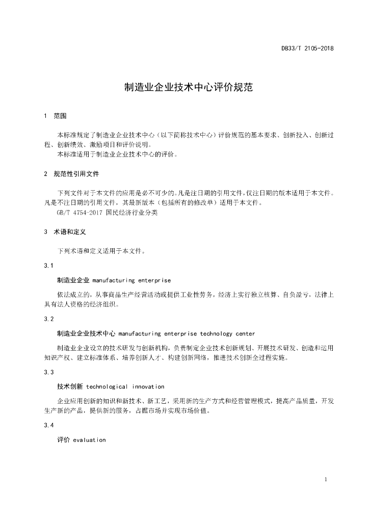 DB33/T 2105-2018 制造业企业技术中心评价规范