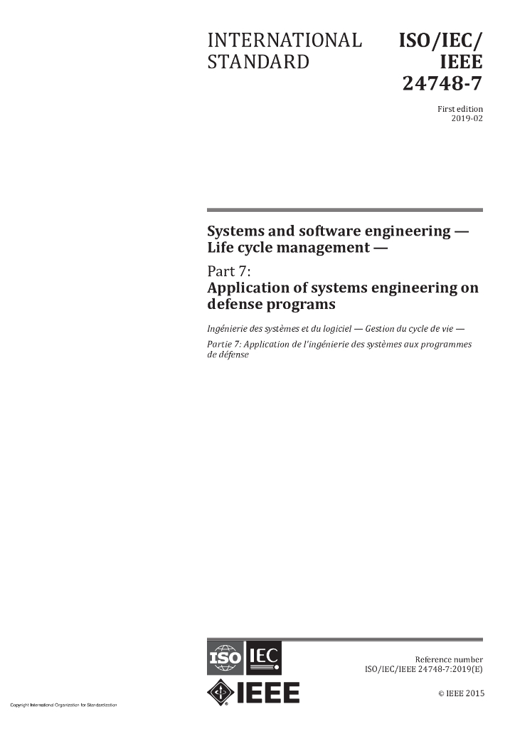 ISO/IEC/IEEE 24748-7-2019 系统和软件工程 生命周期管理 第7部分:系统工程在国防项目中的应用