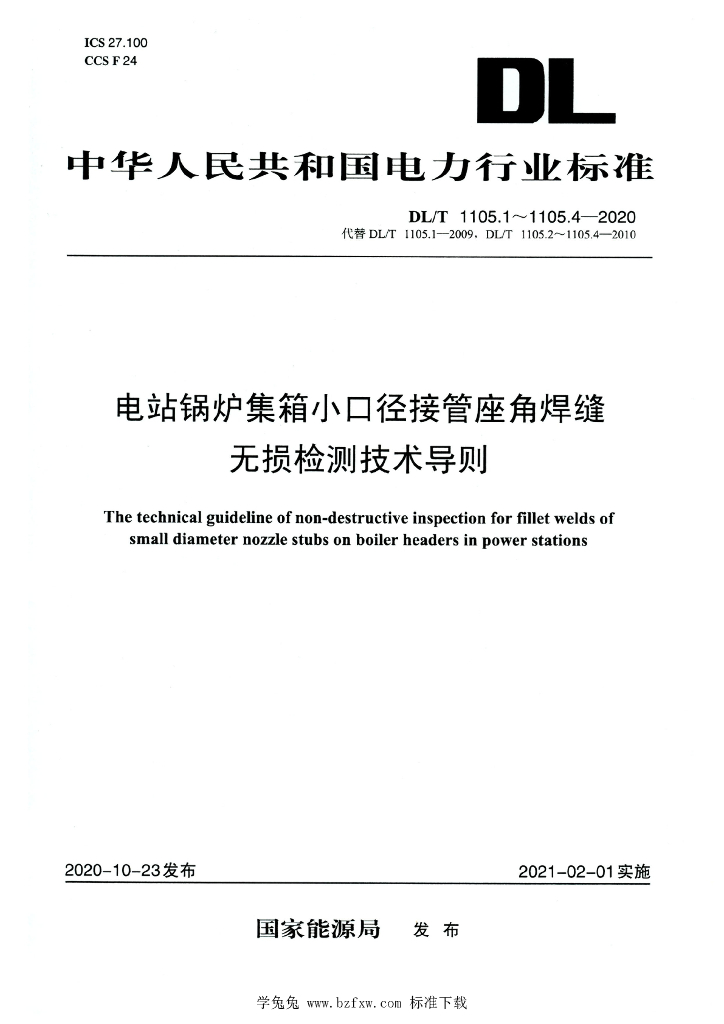 DL/T 1105.1~1105.4-2020 电站锅炉集箱小口径接管座角焊缝无损检测技术导则