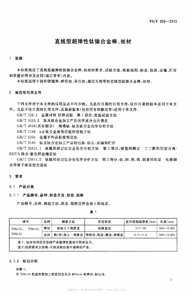 YS/T 859-2013 直线型超弹性钛镍合金棒、丝材