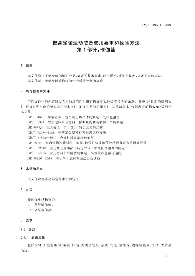 TY/T 3802.1-2024 健身瑜伽运动装备使用要求和检验方法 第1部分:瑜伽垫