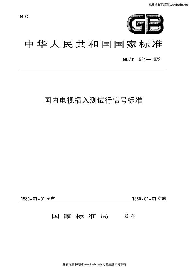 GB/T 1584-1979 国内电视插入测试行信号标准