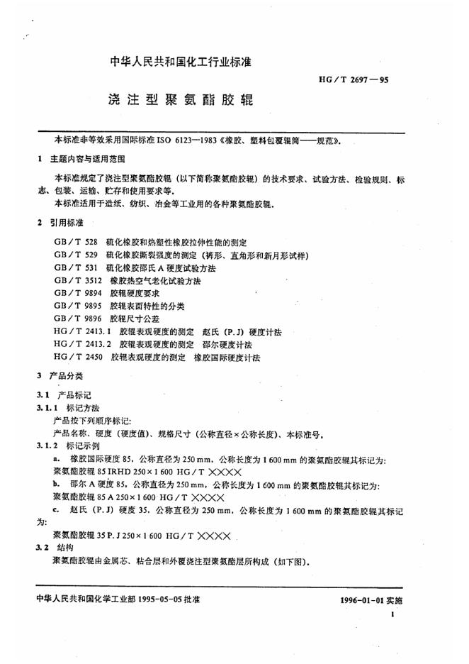 HG/T 2697-1995 浇注型聚氨酯胶辊