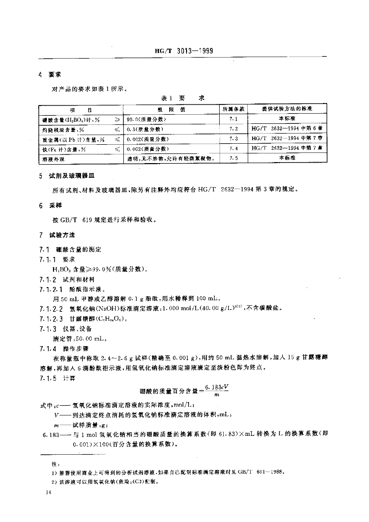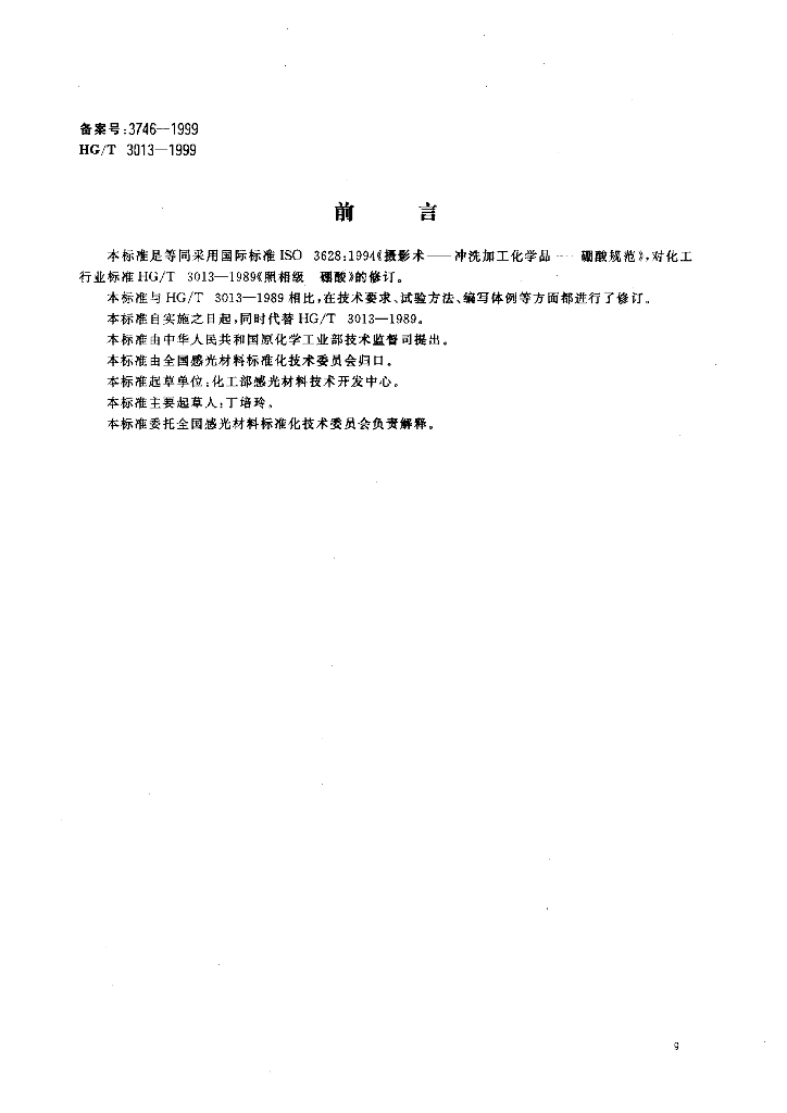 HG/T 3013-1999 摄影术 冲洗加工化学品 颗粒状硼酸规范