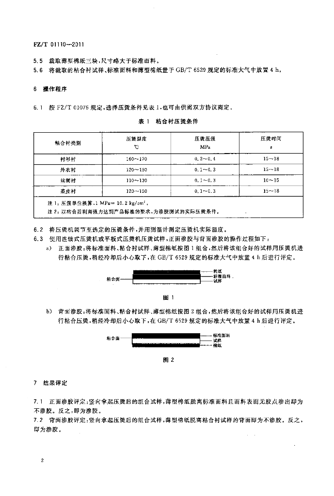 FZ/T 01110-2011 粘合衬粘合压烫后的渗胶试验方法