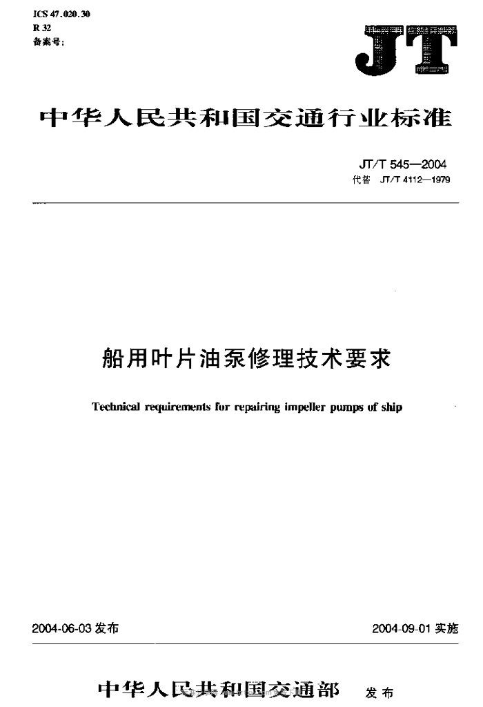 JT/T 545-2004 船用叶片油泵修理技术要求