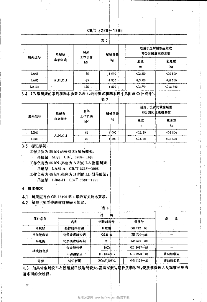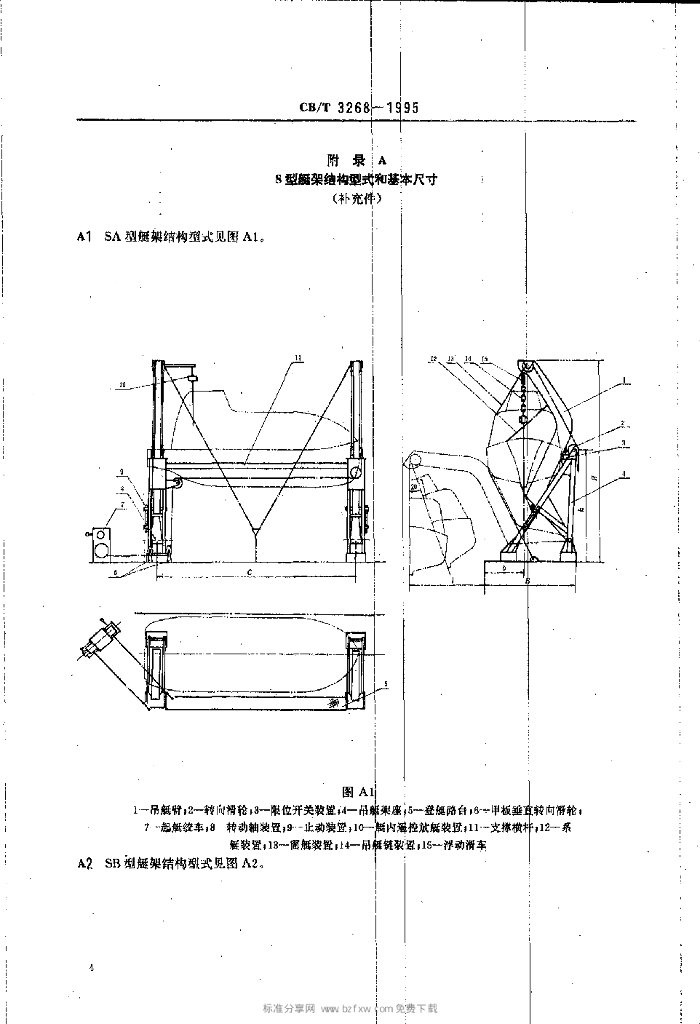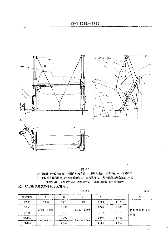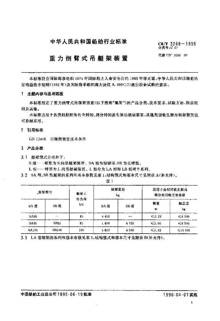 CB/T 3268-1995 重力倒臂式吊艇架装置