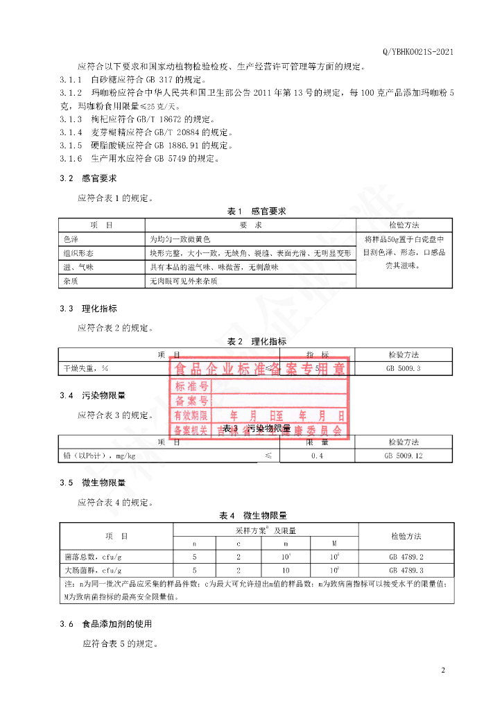 Q/YBHK 0021S-2021 枸杞玛咖压片糖果
