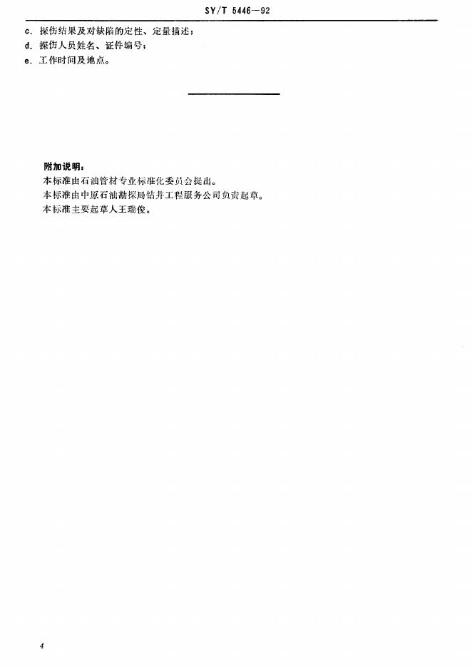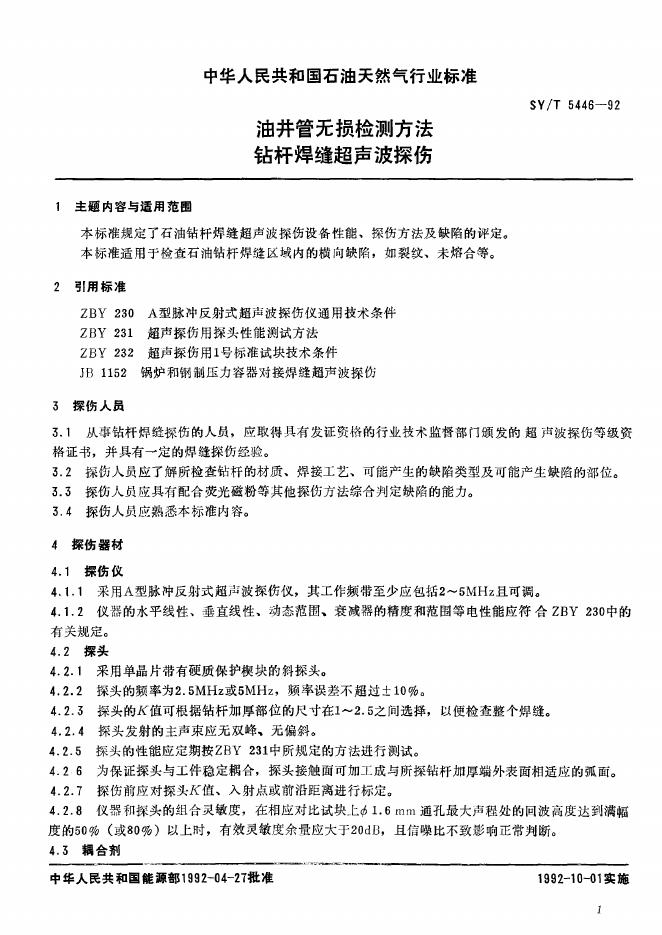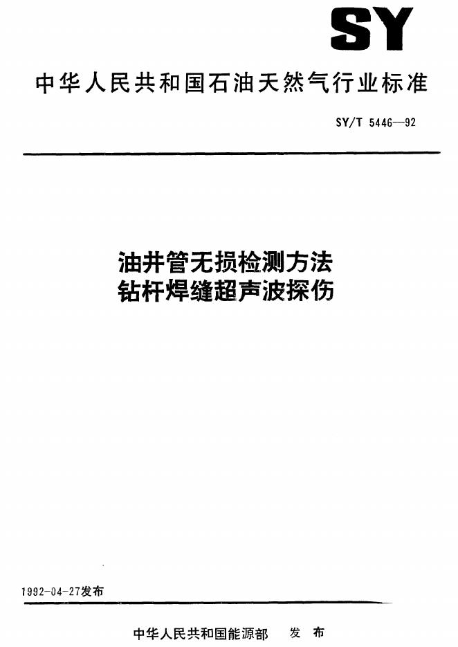 SY/T 5446-1992 油井管无损检测方法 钻杆焊缝超声波探伤