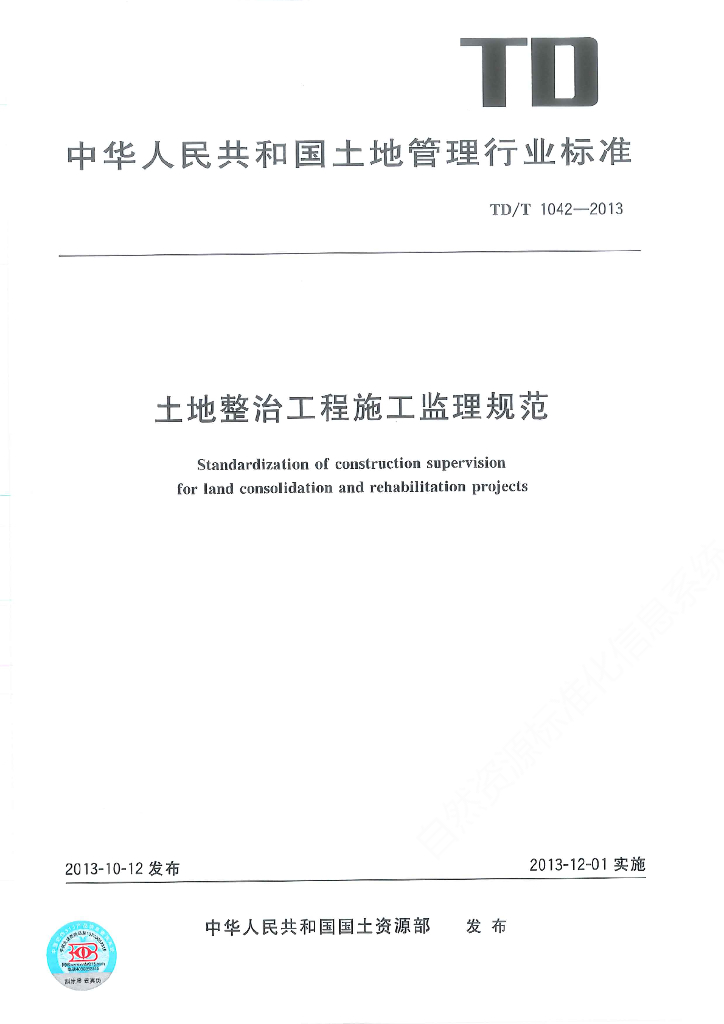 TD/T 1042-2013 土地整治工程施工监理规范