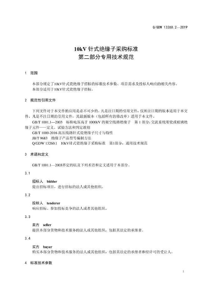 Q/GDW 13260.2-2019 10kV针式瓷绝缘子采购标准 第2部分:专用技术规范