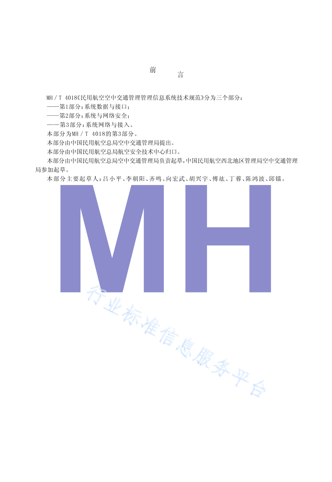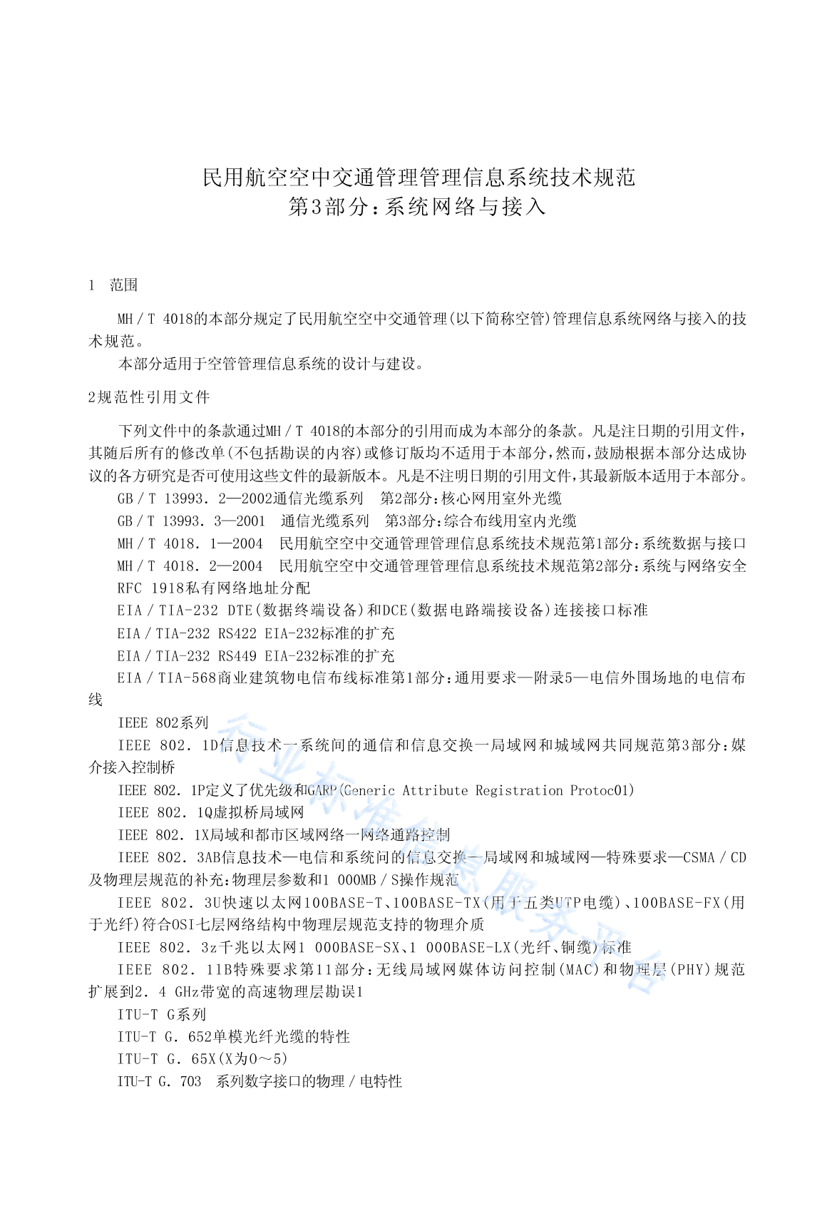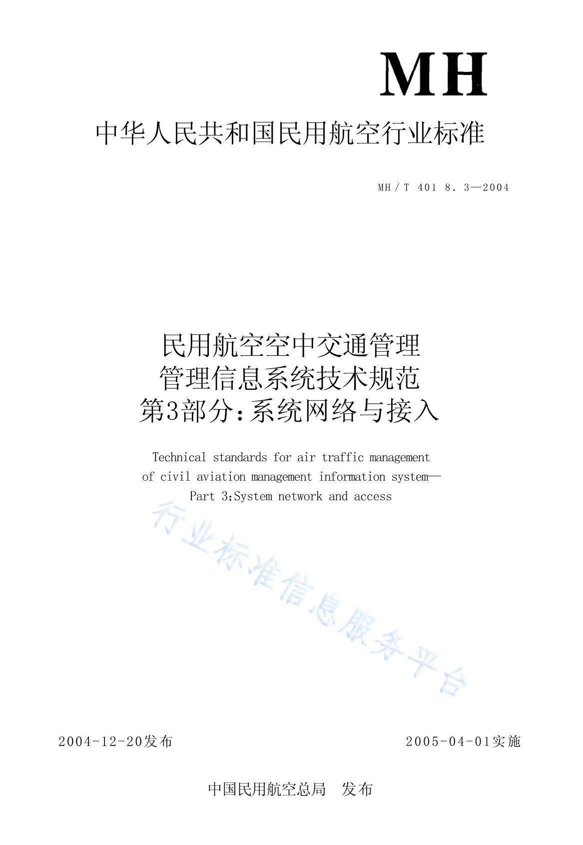 MH/T 4018.3-2004 民用航空空中交通管理信息系统技术规范 第3部分:系统网络与接入
