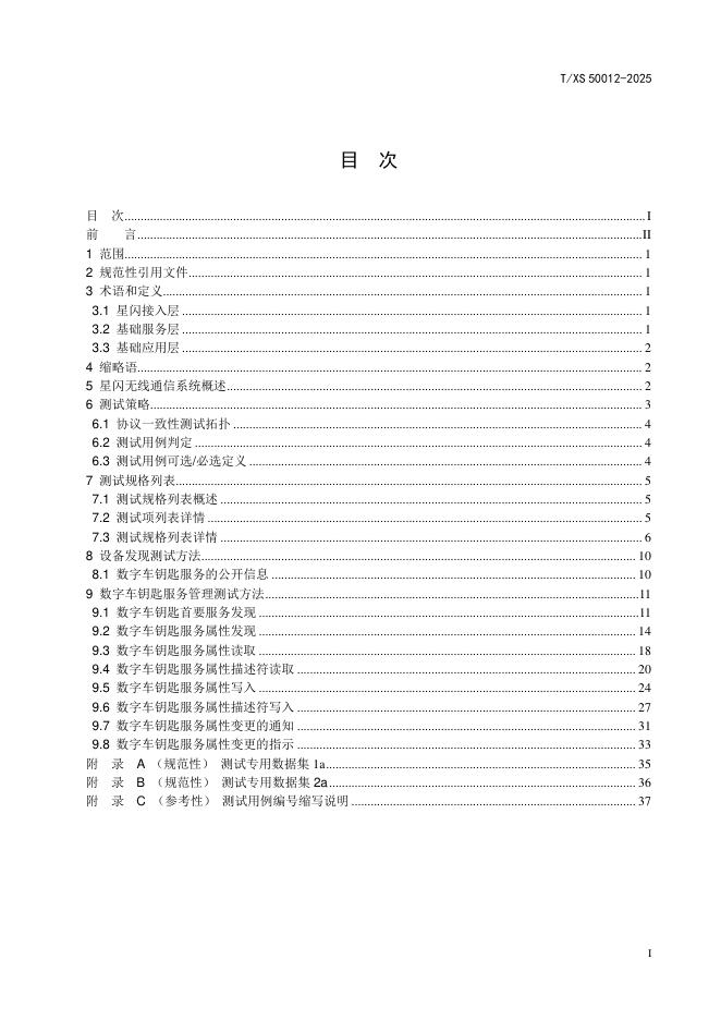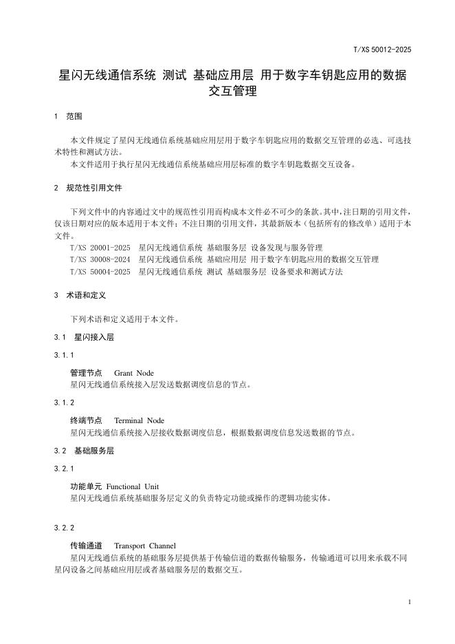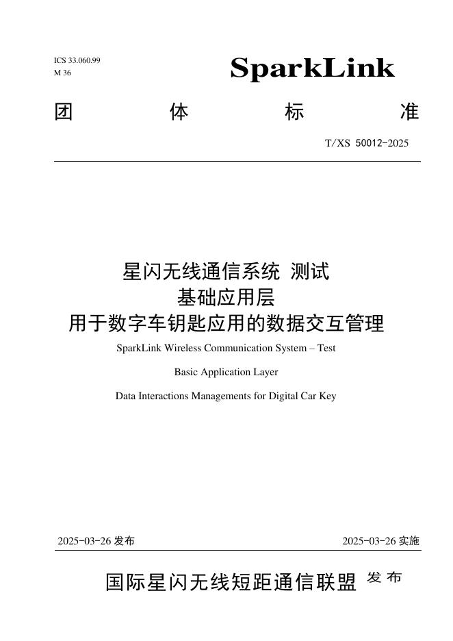 T/XS 50012-2025 星闪无线通信系统 测试 基础应用层 用于数字车钥匙应用的数据交互管理