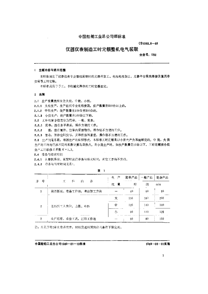 CB 1085.9-1989 仪器仪表制造工时定额 整机电器装联