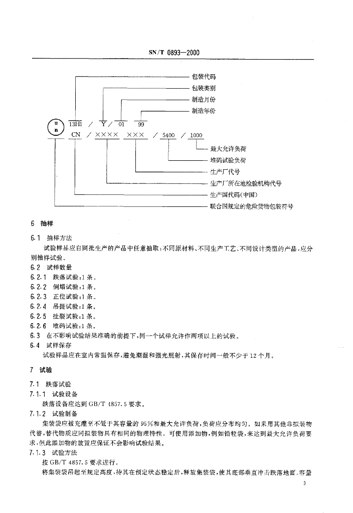 SN/T 0893-2000 海运出口危险货物塑编集装袋性能检验规程