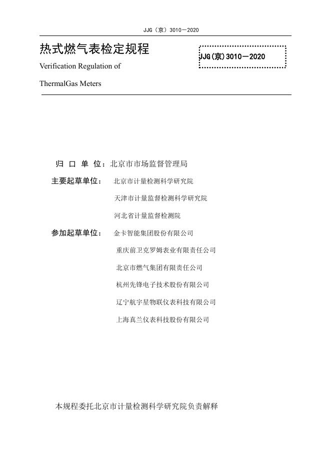 北京市计量检测科学研究院、天津市计量监督检测科学研究院、河北省计量监督检测院、金卡智能集团股份有限公司、重庆前卫克罗姆表业有限责任公司、北京市燃气集团有限责任公司、杭州先锋电子技术股份有限公司、辽宁航宇星物联仪表科技有限公司、上海真兰仪表科技股份有限公司