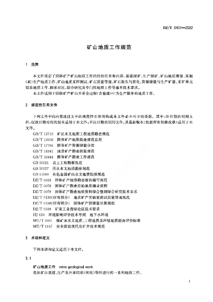 DZ/T 0401-2022 矿山地质工作规范