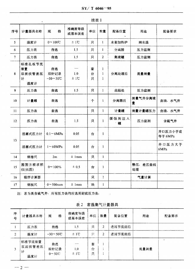 SY/T 5787-1993 油气田供水供电企业计量器具配备规范