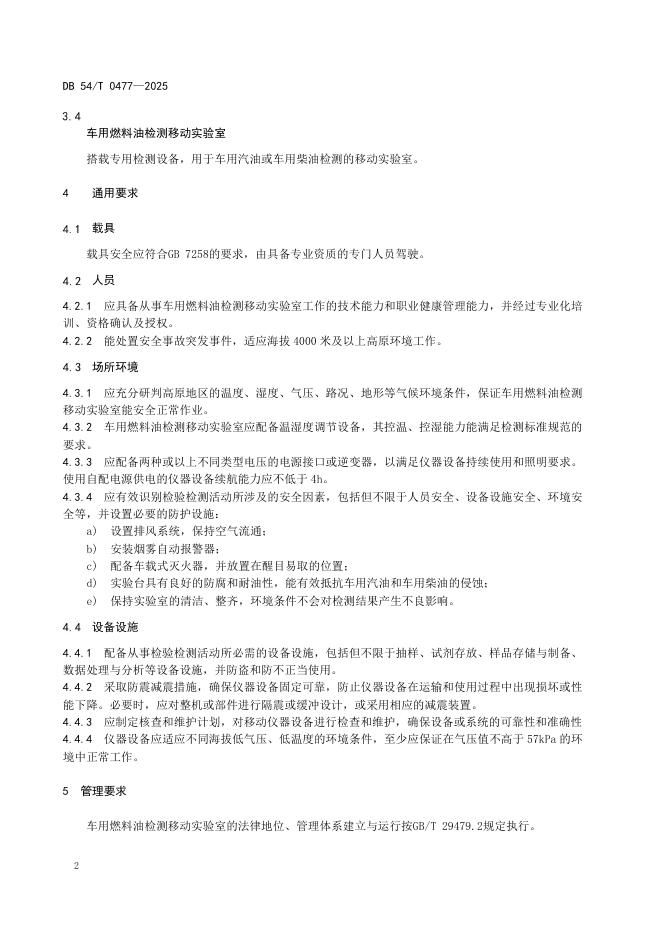 DB54/T 0477-2025 车用燃料油检测移动实验室技术要求