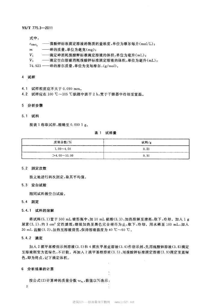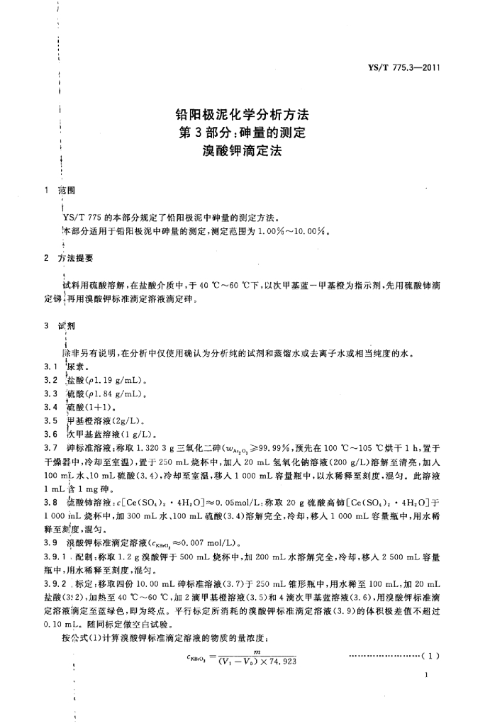 YS/T 775.3-2011 铅阳极泥化学分析方法 第3部分:砷量的测定溴酸钾滴定法