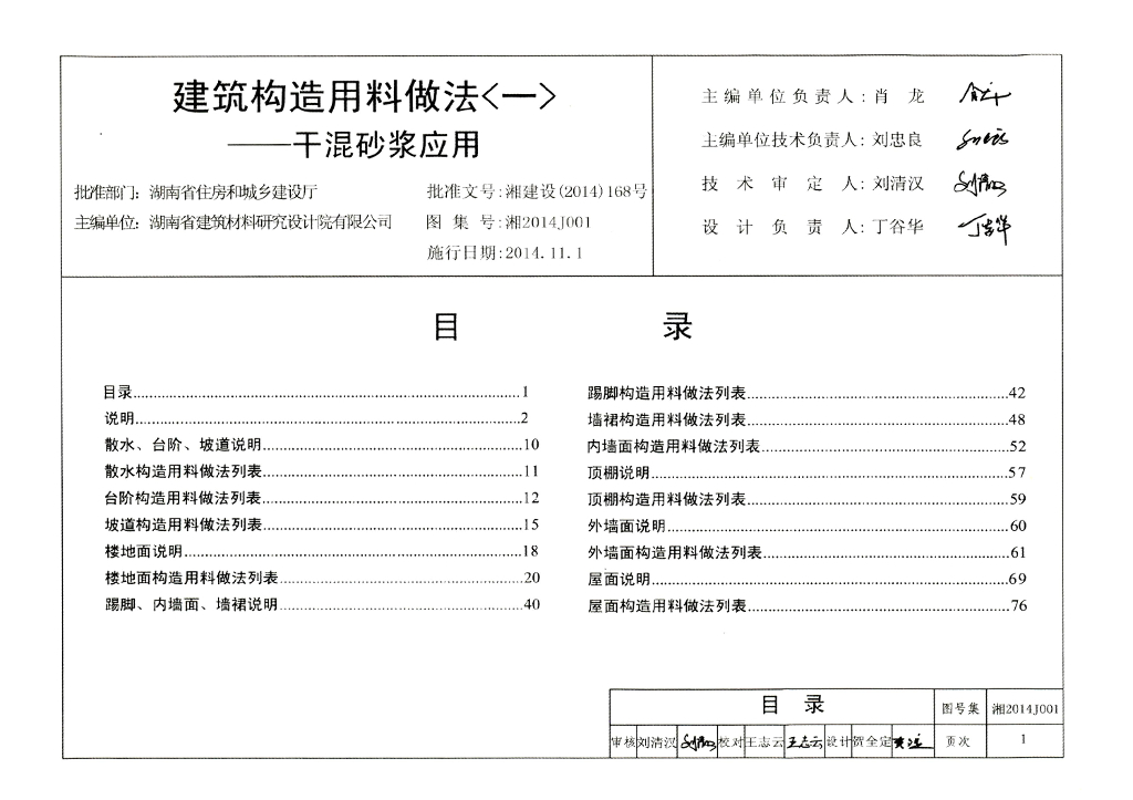 湘2014J001 建筑构造用料做法(一)-干混砂浆应用图集