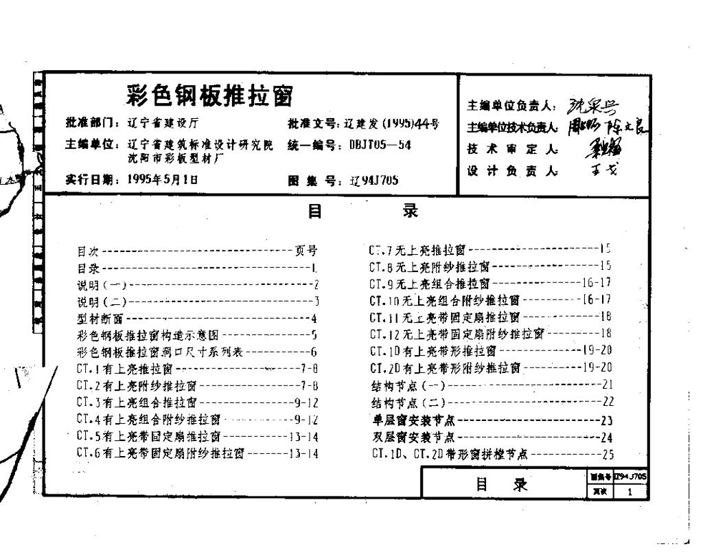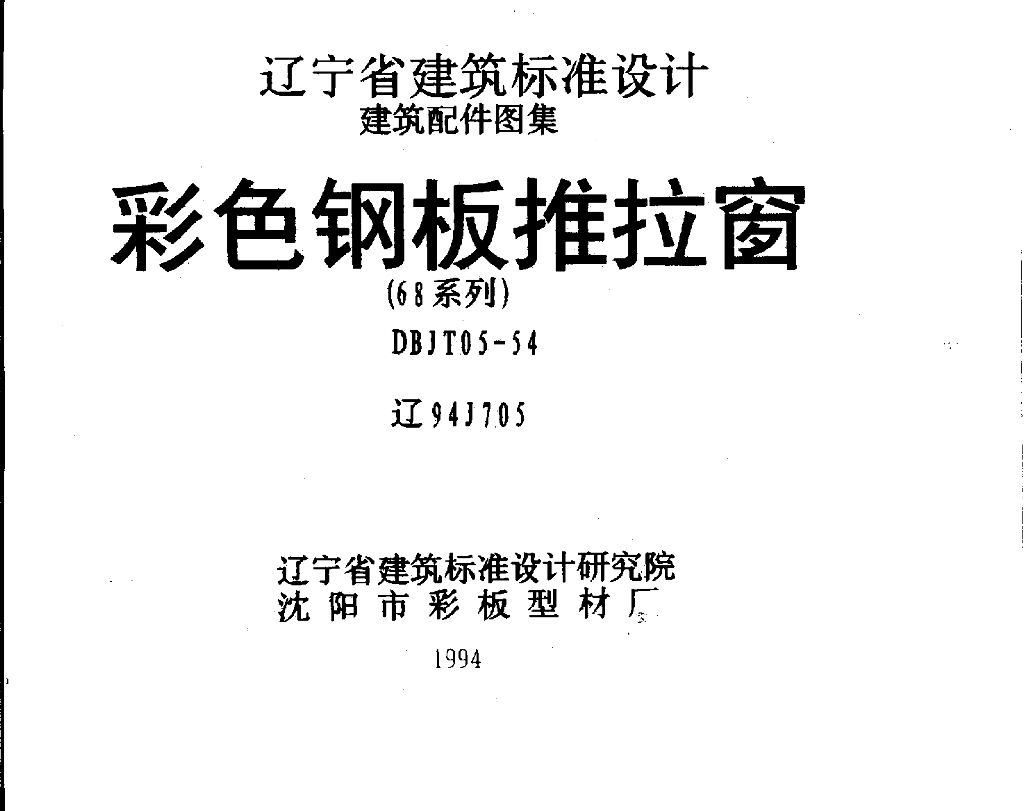 辽94J705 彩色钢板推拉窗图集(辽宁省地方规范图集)