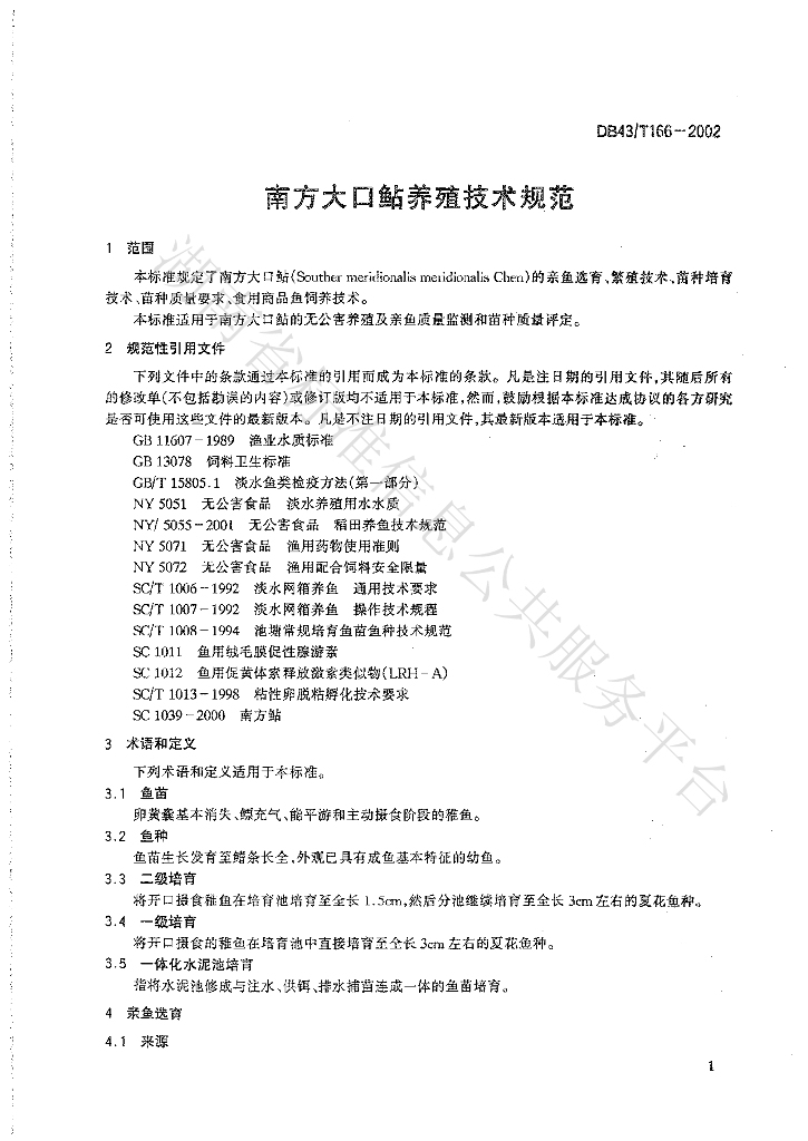DB43/T 166-2002 南方大口鲇养殖技术规范