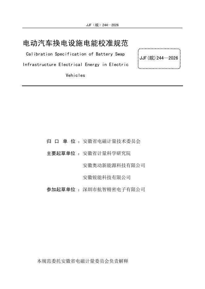 JJF(皖)244-2026 电动汽车换电设施电能校准规范
