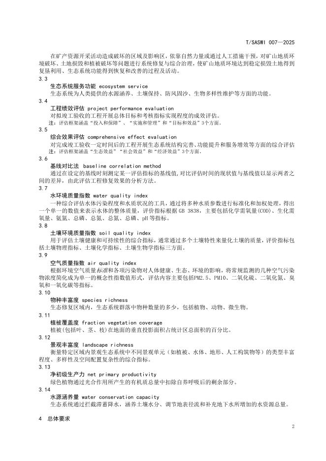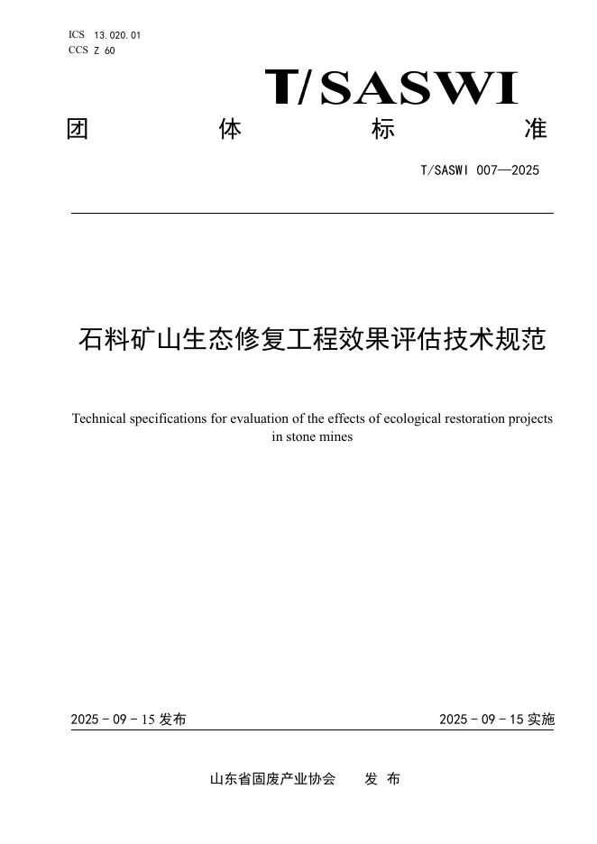 T/SASWI 007-2025 石料矿山生态修复工程效果评估技术规范