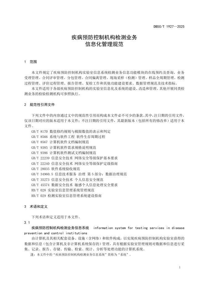 DB50/T 1927-2025 疾病预防控制机构检测业务信息化管理规范