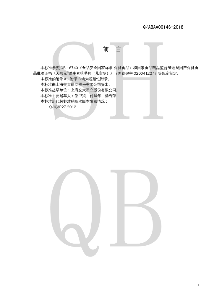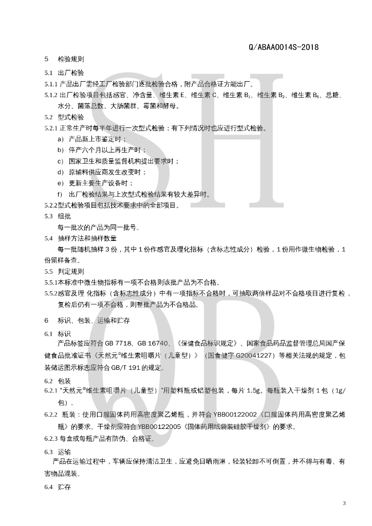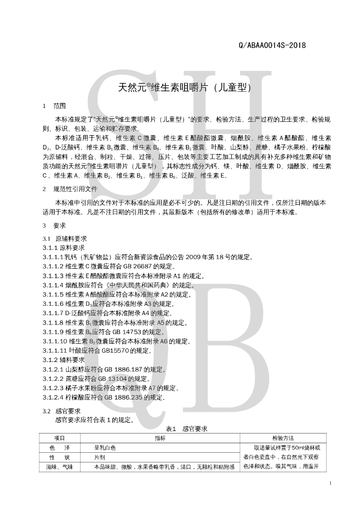 Q/ABAA 0014S-2018 天然元®维生素咀嚼片(儿童型)