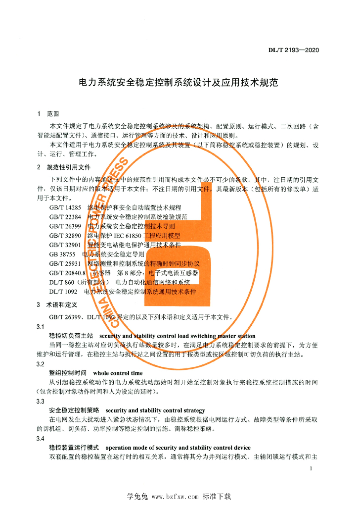 DL/T 2193-2020 电力系统安全稳定控制系统设计及应用技术规范