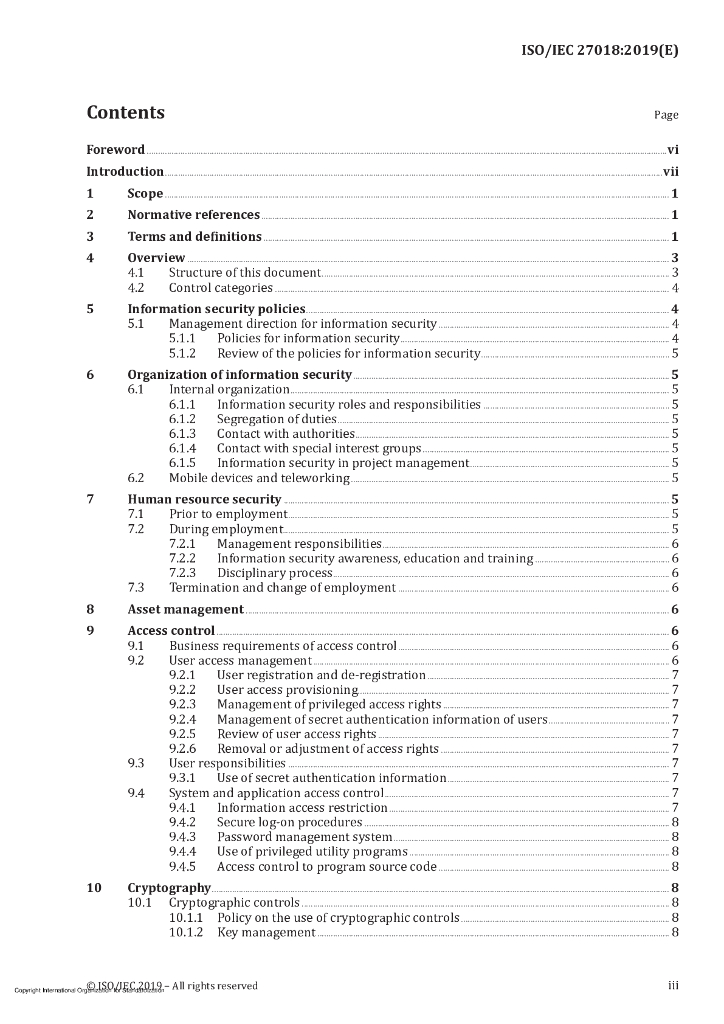 ISO/IEC 27018-2019 信息技术 安全技术 作为个人可识别信息(PII)处理器在公共云中保护个人可识别信息(PII)的实施规程