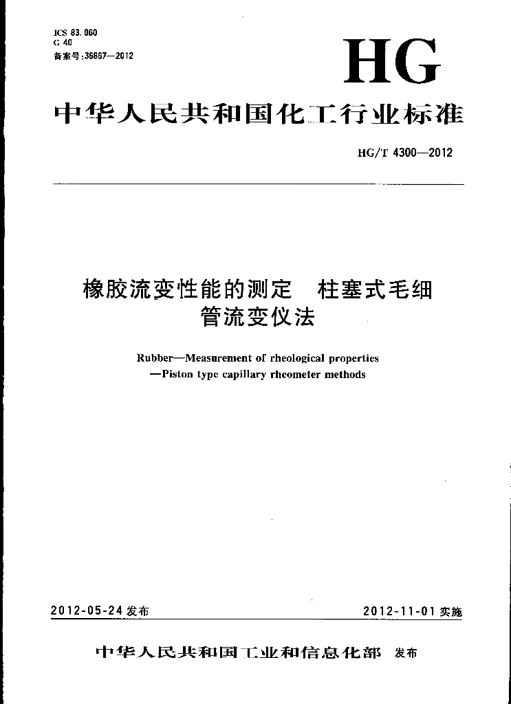 HG/T 4300-2012 橡胶流变性能的测定 柱塞式毛细管流变仪法