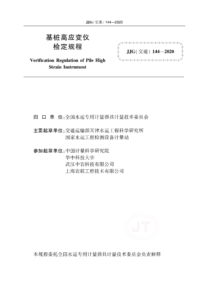 JJG(交通)144-2020 基桩高应变仪