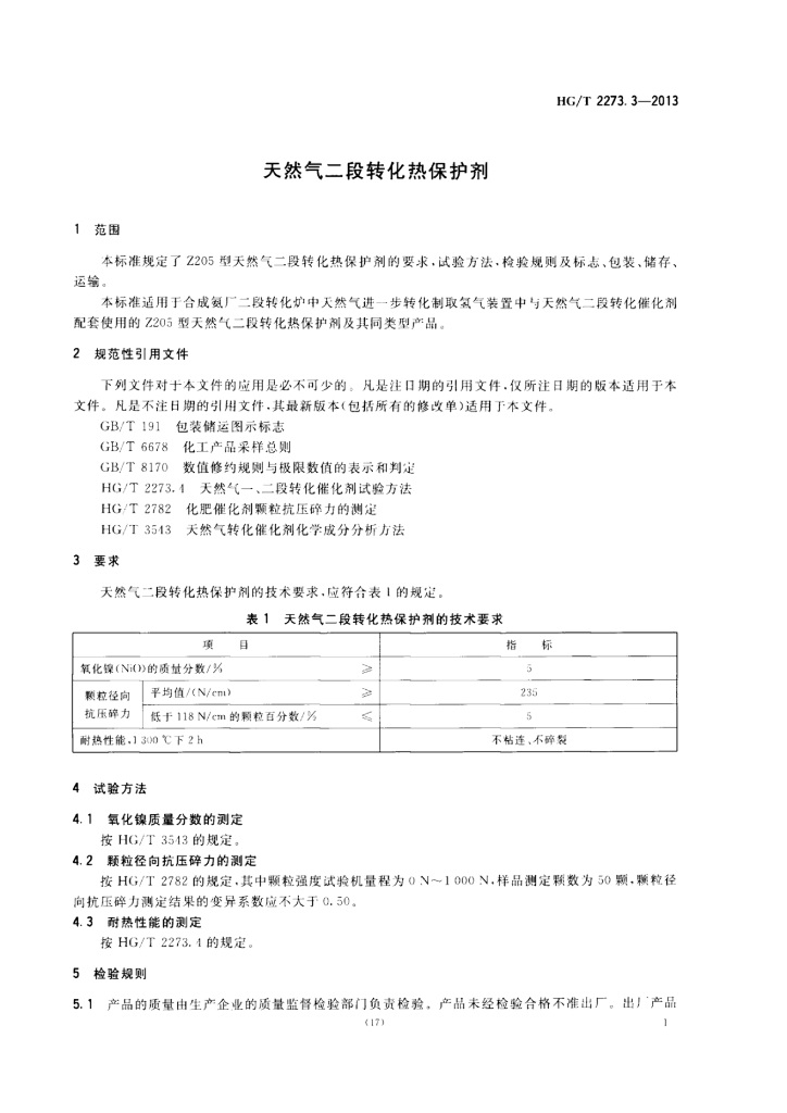 HG/T 2273.3-2013 天然气二段转化热保护剂