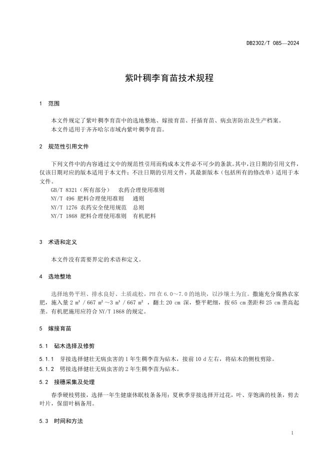 DB2302/T 085-2024 紫叶稠李育苗技术规程
