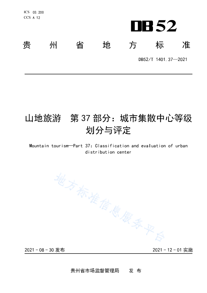 DB52/T 1401.37-2021 山地旅游 第37部分:城市集散中心等级划分与评定