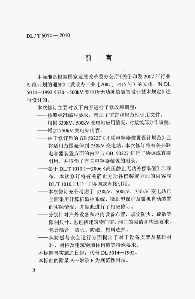 DL/T 5014-2010 330kV~750kV变电站无功补偿装置设计技术规定