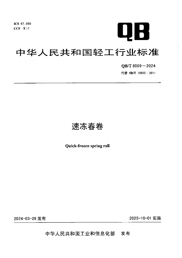 QB/T 8009-2024 速冻春卷