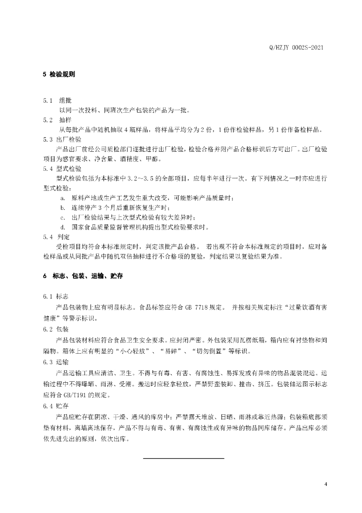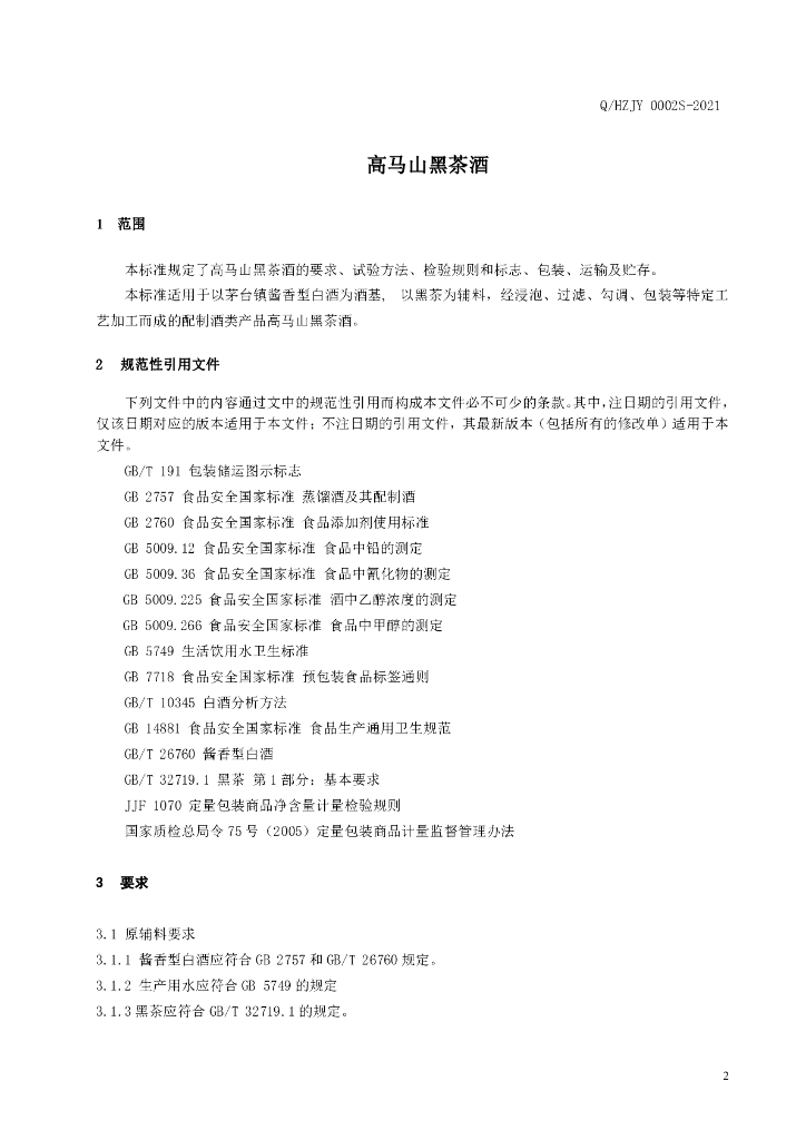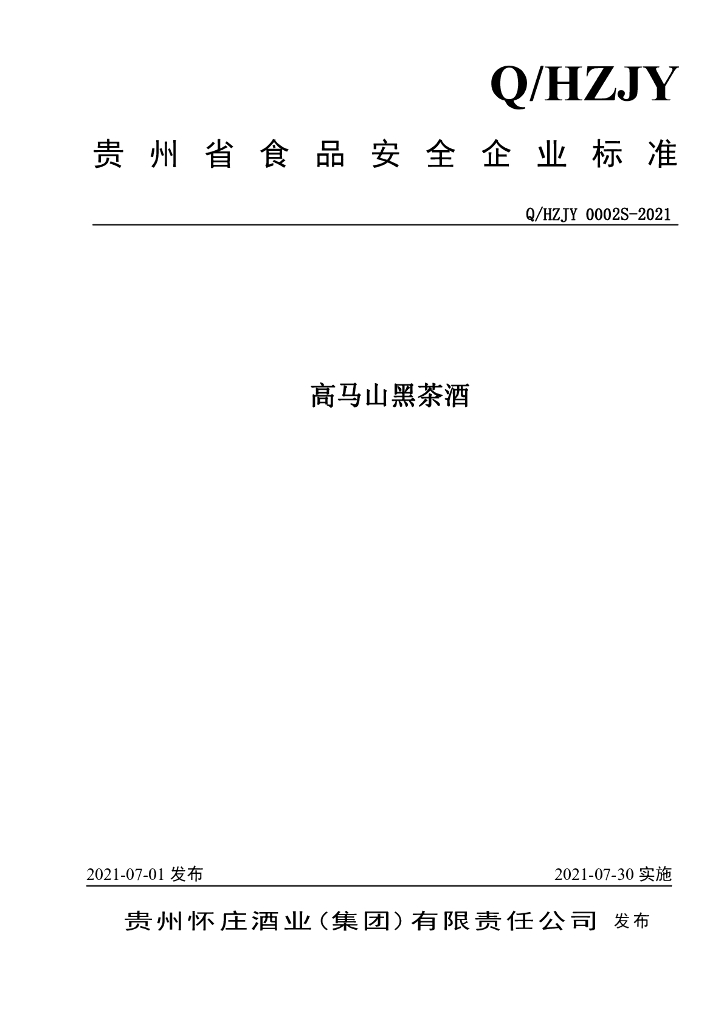 Q/HZJY 0002S-2021 高马山黑茶酒