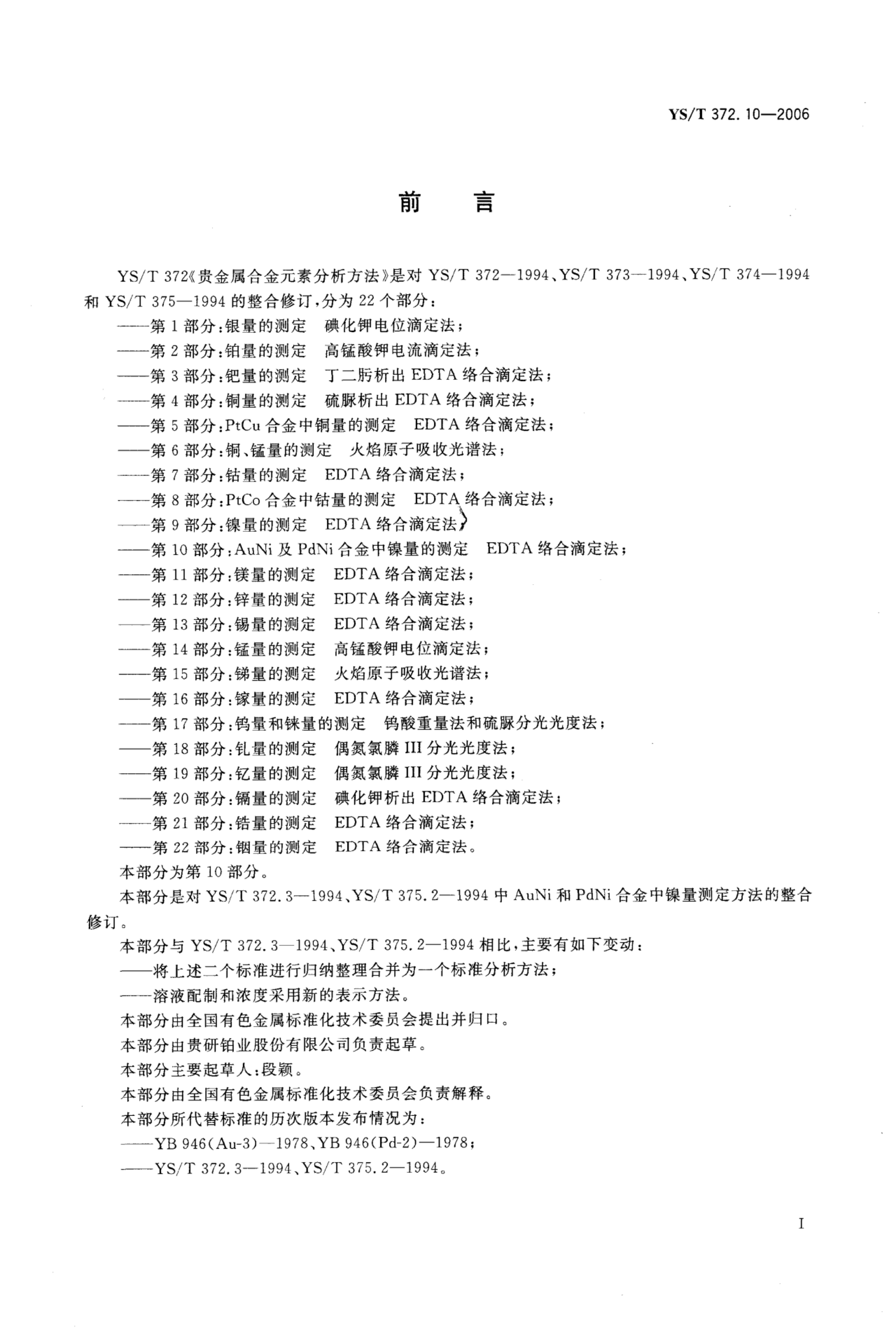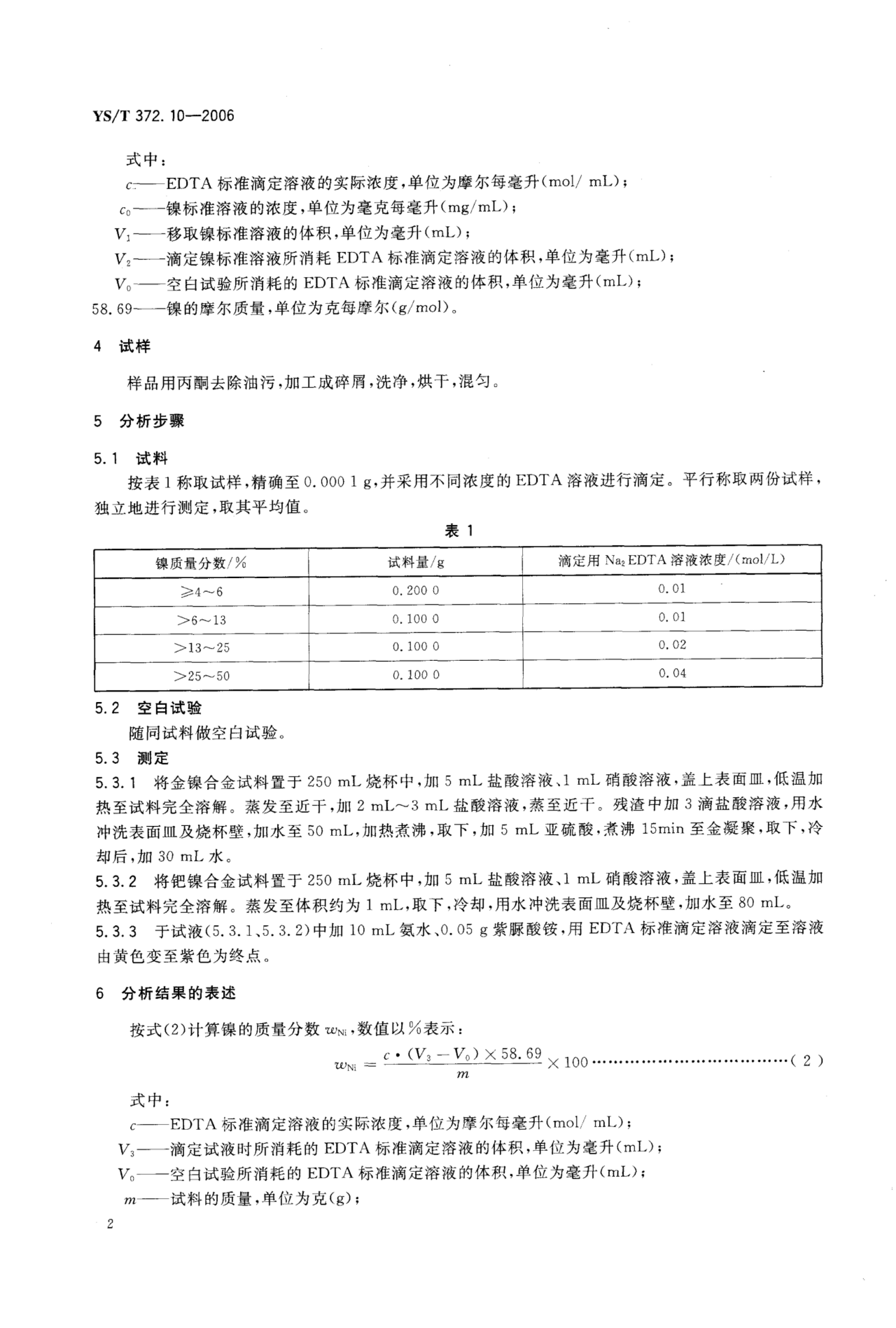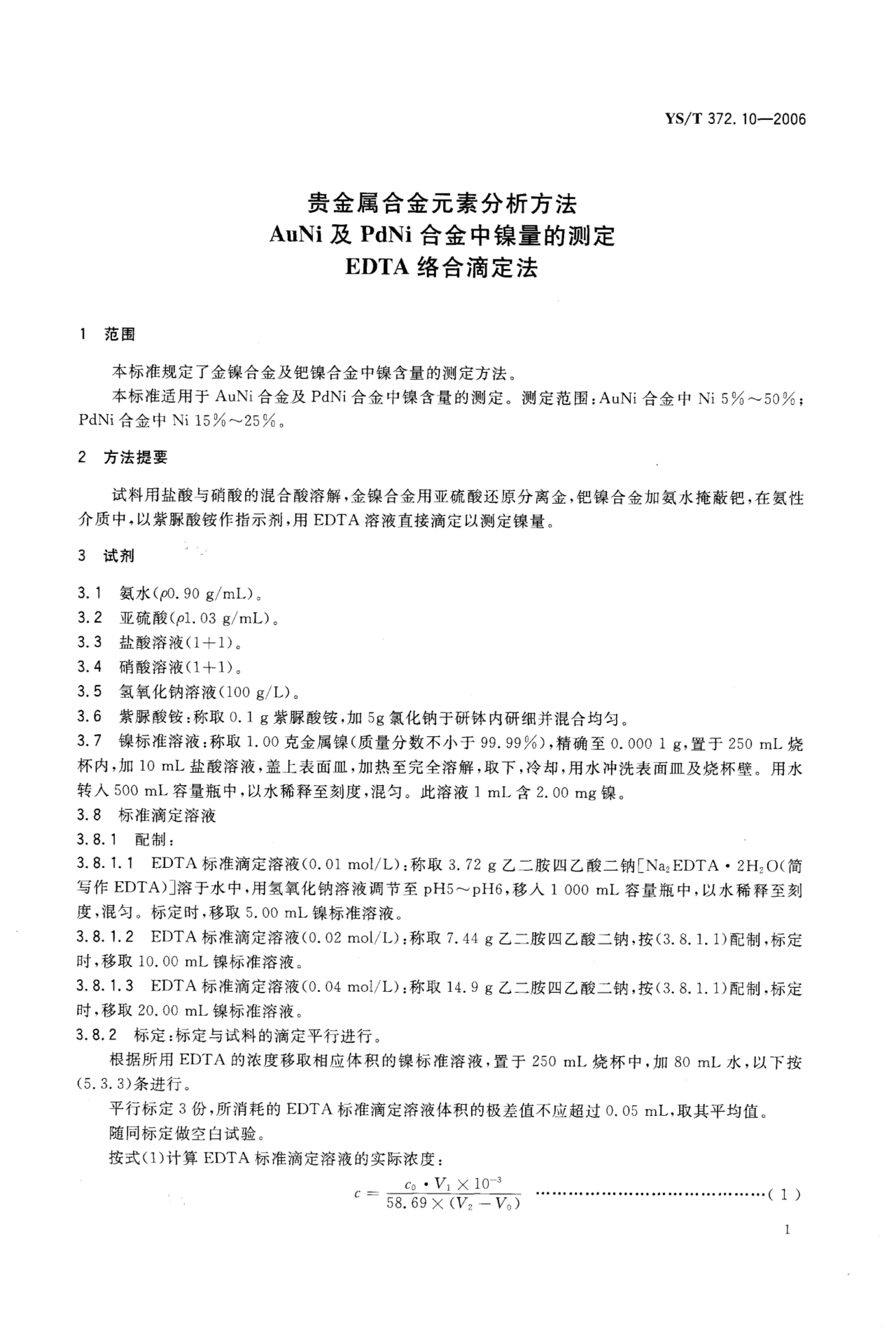 YS/T 372.10-2006 贵金属合金元素分析方法 AuNi及PdNi合金中镍量的测定EDTA络合滴定法
