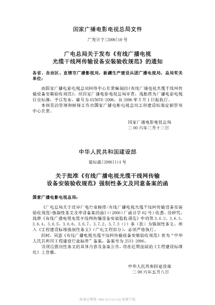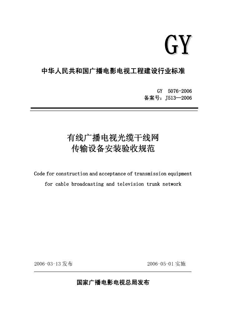 GY 5076-2006 有线广播电视光缆干线网传输设备安装验收规范