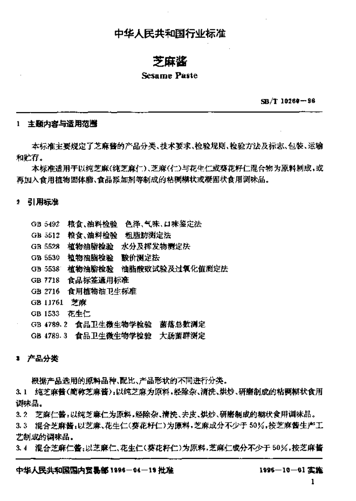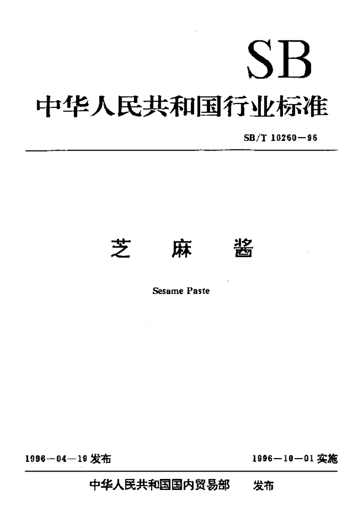 SB/T 10260-1996 芝麻酱