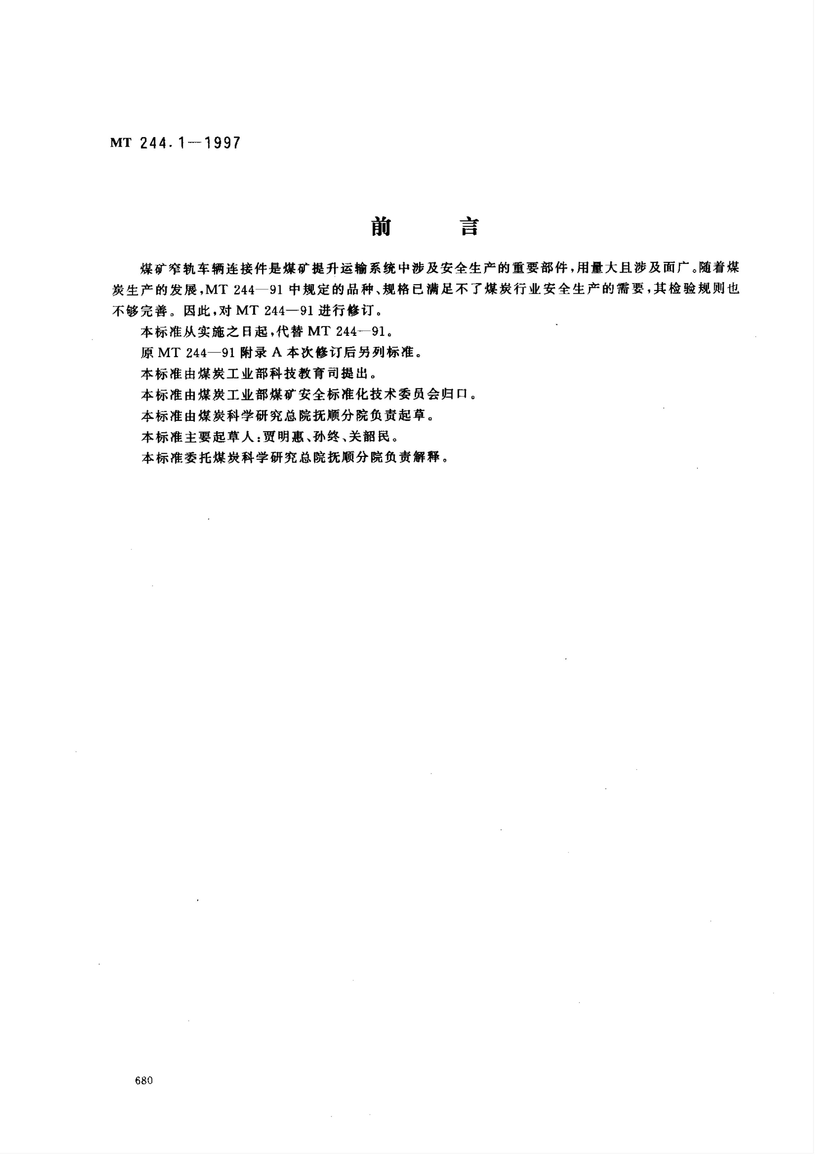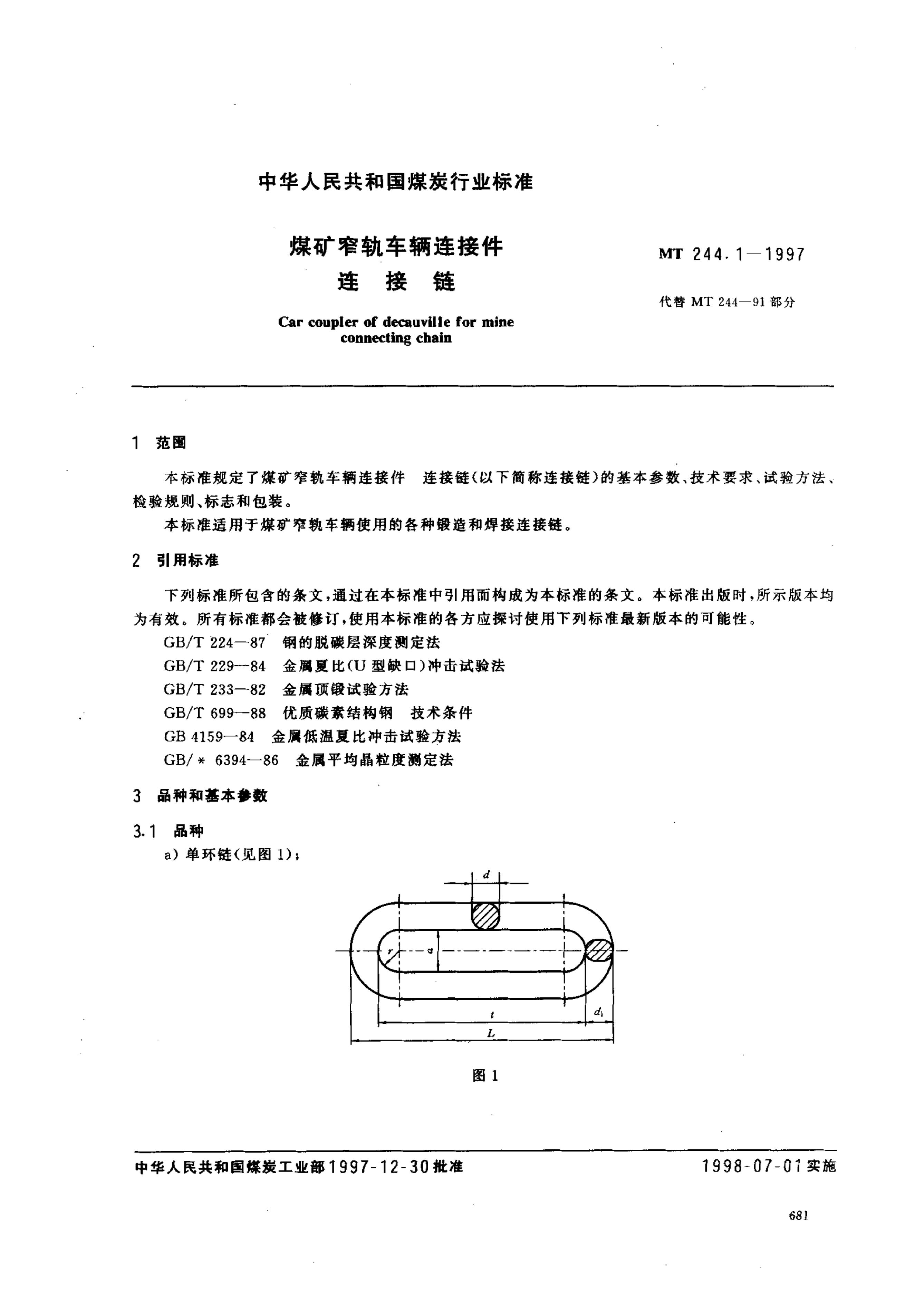 MT 244-1991 煤矿窄轨车辆连接链