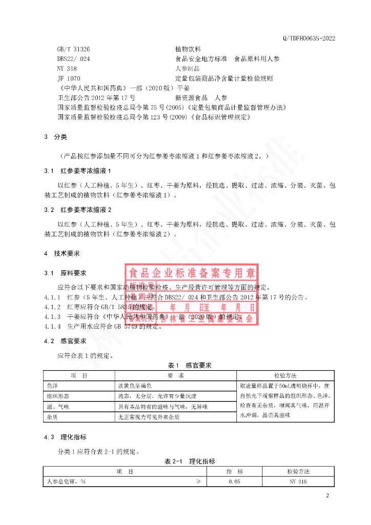 Q/TDFH 0063S-2022 红参姜枣浓缩液