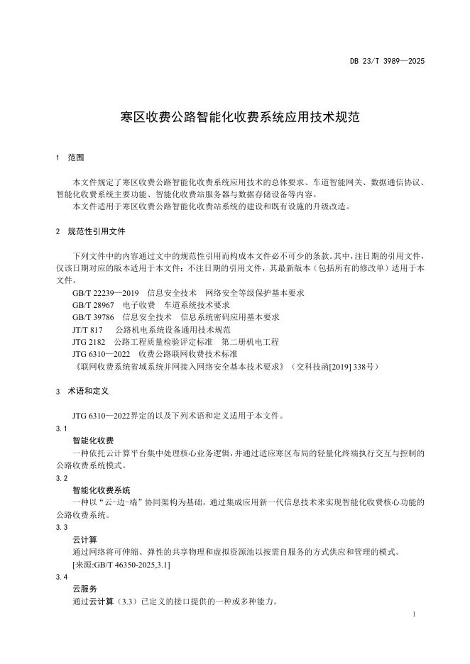 DB23/T 3989-2024 寒区收费公路智能化收费系统应用技术规范