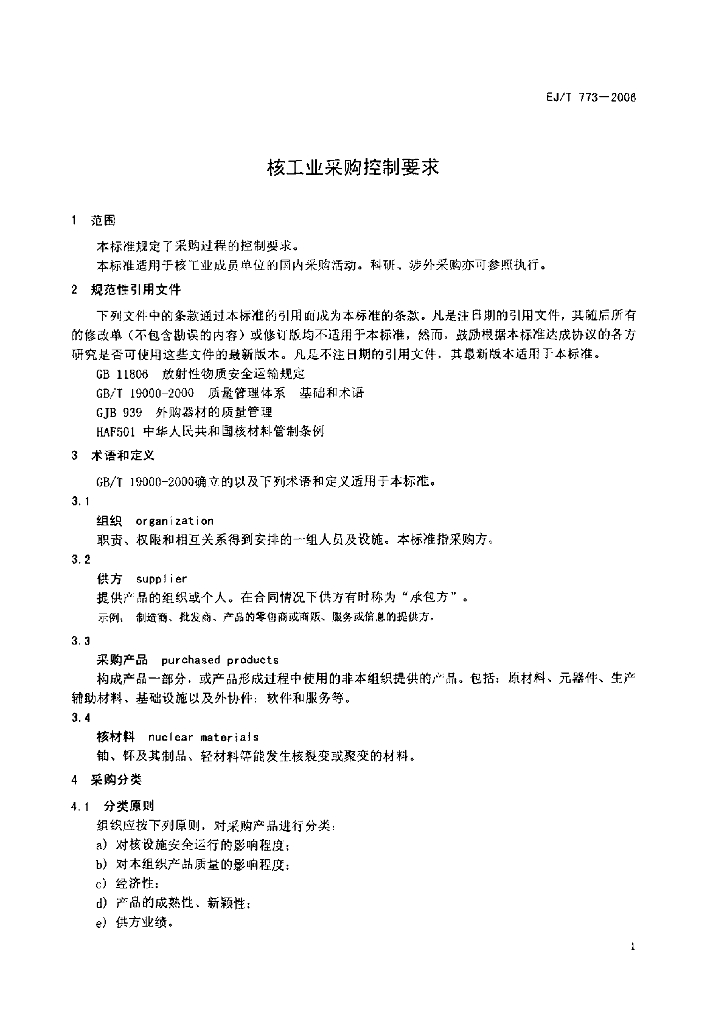EJ/T 773-2006 核工业采控制要求