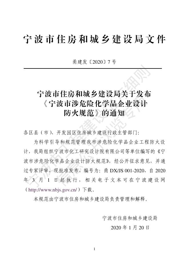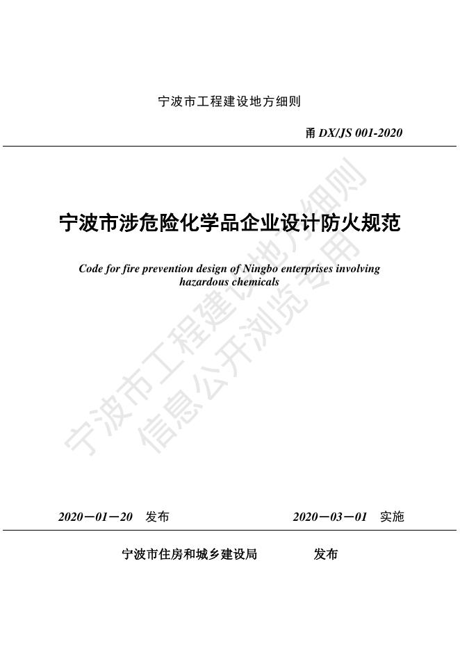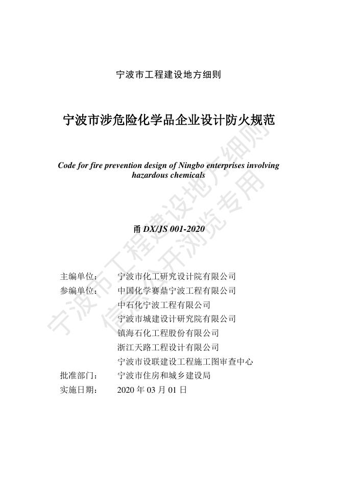 甬DX/JS 001-2020 宁波市涉危险化学品企业设计防火规范