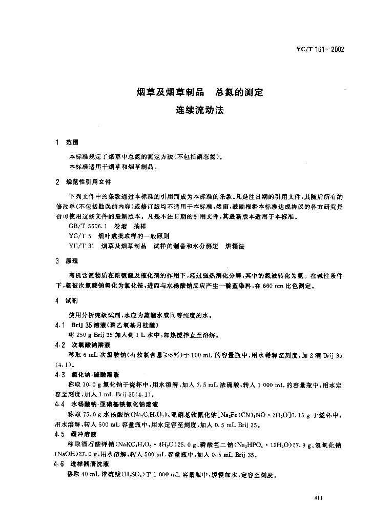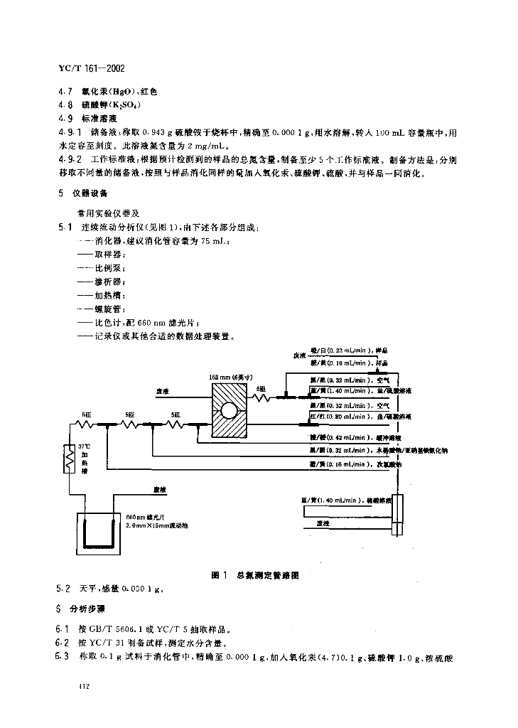 YC/T 161-2002 烟草及烟草制品 总氮的测定 连续流动法
